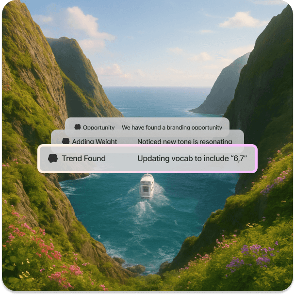 Captures your brand’s essence by learning from your visuals, language, and design decisions, building a living profile that reflects how your brand truly thinks and feels. All from just your website.